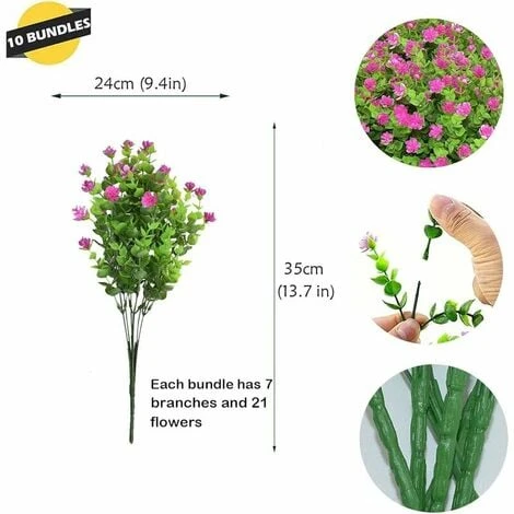 Illumina la tua giornata – 10 fiori artificiali realistici. portare la bellezza lussureggiante della natura nella tua vita e creare un’atmosfera confortevole. i fiori che sbocciano illuminano facilmente il tuo umore e aggiungono un’atmosfera più romantica e artistica alla tua casa. Materiale e dimensioni: questi cespugli artificiali sono realizzati in plastica. durevole. impermeabile. resistente alla luce e difficile da rompere. Ogni bouquet ha 7 steli flessibili e 21 capolini. ma nessuna polvere embtant. Misura circa 35 cm di lunghezza e 24 cm di larghezza. Possono anche essere ampliati secondo le vostre esigenze. Senza manutenzione: le piante in plastica sono resistenti ai raggi UV e non sbiadiscono mai. I fiori artificiali dall’aspetto raffinato sono perfetti per qualsiasi progetto paesaggistico o stile di interni. può sopravvivere a qualsiasi tempesta. non richiedono manutenzione o irrigazione e non sbiadiscono. risparmi tempo e fatica nella cura. Occasioni applicabili: questi fiori artificiali realistici aggiungono un bellissimo fascino al tuo portico. patio e giardino. Queste piante artificiali possono essere utilizzate anche nei ristoranti. Le camere. i caffè. i balconi. i salotti. i tavoli da pranzo. davanzali. cesti di fiori. vasi di fiori. i vasi. ecc. Porta più colore nella tua vita! Servizio di qualità: se non sei soddisfatto dei prodotti nel nostro negozio. non esitate a contattare il nostro servizio clienti. il servizio clienti risponde alle tue domande online 24 ore.