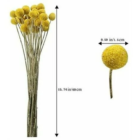 Dimensioni: la craspedia essiccata gialla è lunga 40 cm, adatta per un vaso grande. Lo stelo essiccato può anche essere tagliato a piacere in modo da poterlo mettere in un cesto, una bottiglia di vetro o come regalo.