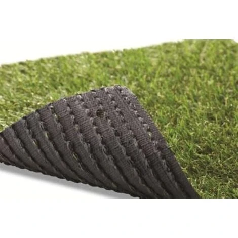Prato verde Luxury 20 mm H. 100 L. 300 cm con monofilo in polietilene e fili arricciati in polipropilene di quattro colori. Prodotto trattato a raggi UV, con supporto in latex sintetico, microforato per il drenaggio dell’acqua.