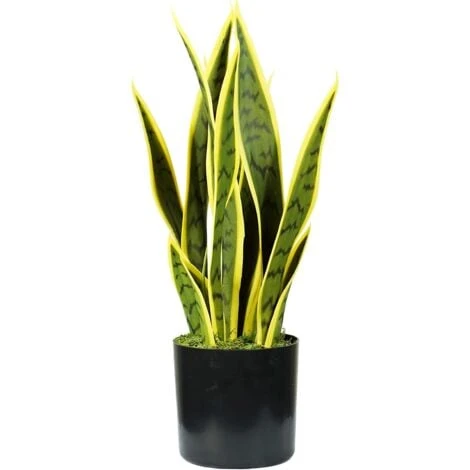 PIANTA FINTA SANSEVIERIA IN POLIETILENE H. 45 cm 12 FOGLIE VASO c/MUSCHIO Ø12,5 x 11,5 H cm
