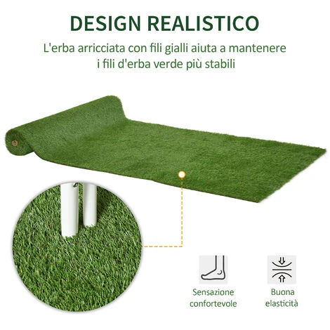 Con il brutto tempo il tuo prato ha perso la sua bellezza e non resisti all’idea di vedere il tuo giardino con una soffice distesa d’erba sulla quale camminare? Il tappeto erboso Outsunny è quello che ti serve per avere un prato verde e rigoglioso che resista alle intemperie ogni giorno dell’anno. Questo prato finto ha un aspetto realistico, la sua consistenza soffice ed elastica offre un confortevole spazio.