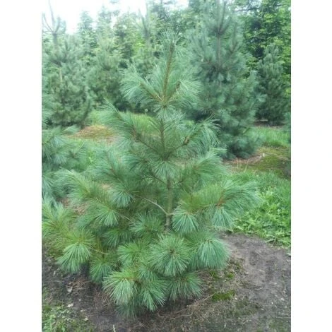 Il Pinus strobus e’ una conifera sempreverde a crescita medio-veloce, alta fino a 30 metri. Portamento conico con rami disposti a verticillo sul fusto, quasi orizzontali. Aghi riuniti in fascetti di 5, lunghi fino a 15 cm., sottili e flessuosi in ciuffi eretti sui rami. Pianta monoica con infiorescenze maschili e femminili separate ma sulla stessa pianta. Pigne peduncolate, affusolate, incurvate verso l’apice, lunghe fino a 20 cm.