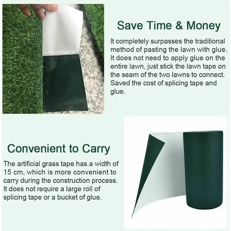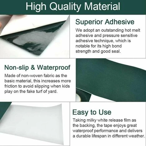 Ampia gamma di applicazioni: questo nastro per tappeti erbosi è comunemente usato per la costruzione e la manutenzione di prati artificiali. È molto adatto per collegare erba artificiale e tappetini da esterno per riparare il prato. Adatto per uso interno ed esterno come giardini, tetti, balconi e ingressi.